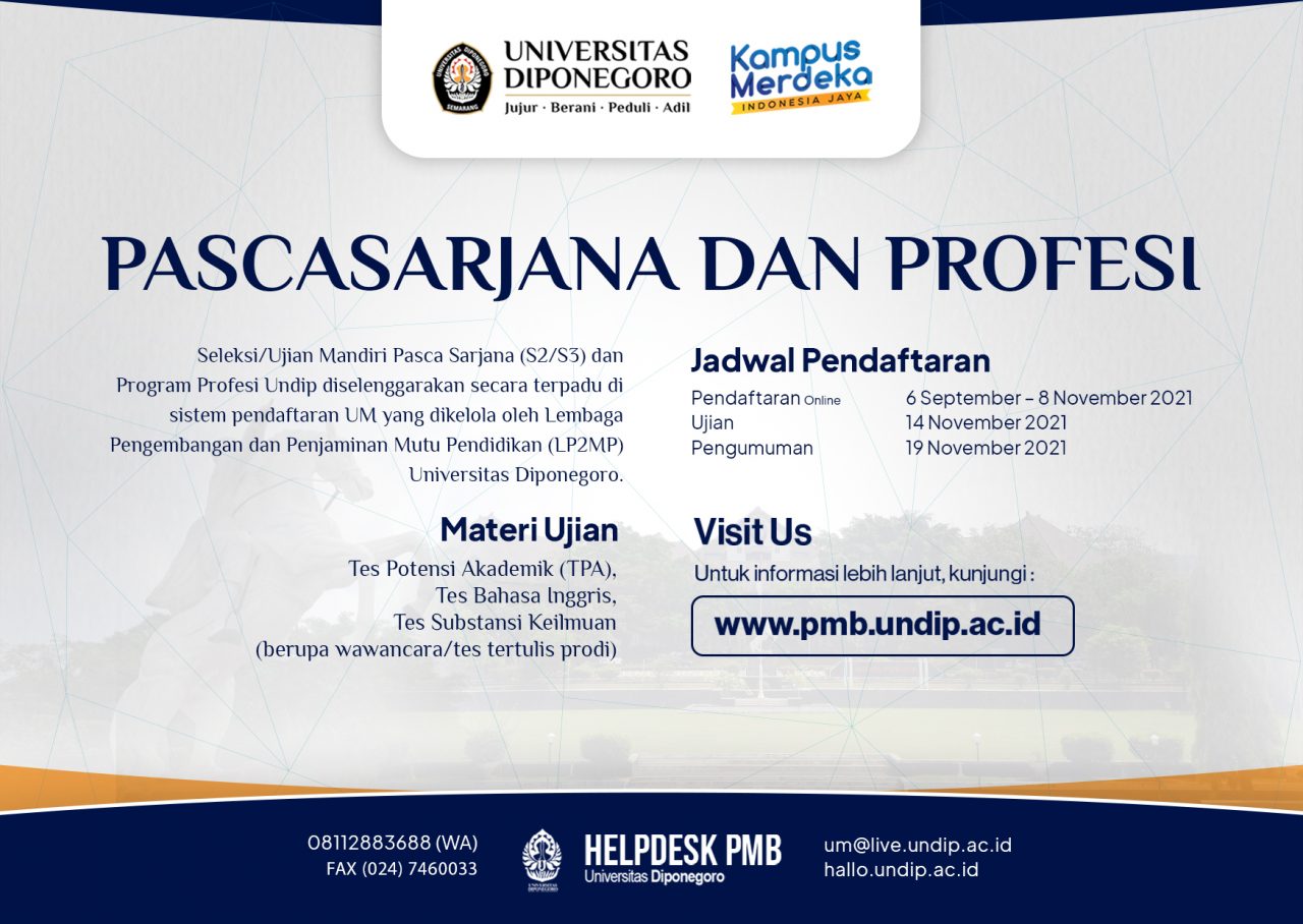 Rector of Universitas Diponegoro hereby announces participants who have passed the selection as Prospective New Students on Postgraduate and Profession Independent Test Of Even Semester